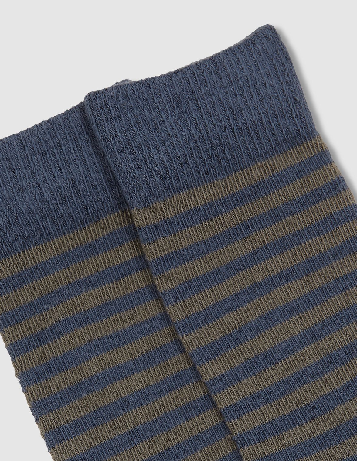 Chaussettes à larges rayures grises et marron foncé avec détails contrastés sur la pointe et le talon.